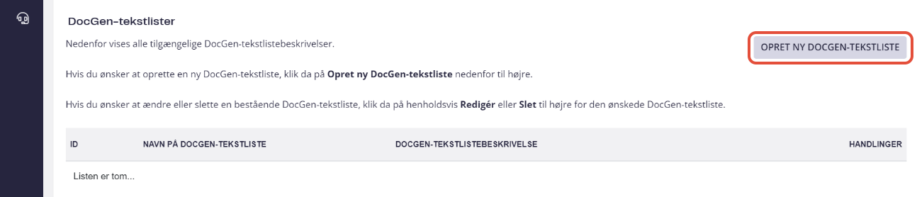 - Gå til administrationsmodulet: DocGen-dokumenter