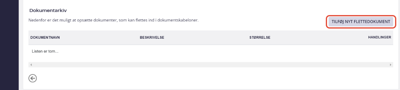 Når en kontrakt sendes til underskrift er det muligt at flette den sammen med et 'standard-dokument', altså et dokument, der ikke indeholder flettefelter. Dette kunne f.eks. være en personalehåndbog. For at kunne flette dokumentet sammen med den genererede kontrakt skal det først uploades i administrationsmodulet: DocGen-dokumenter. Dette gøres ved: