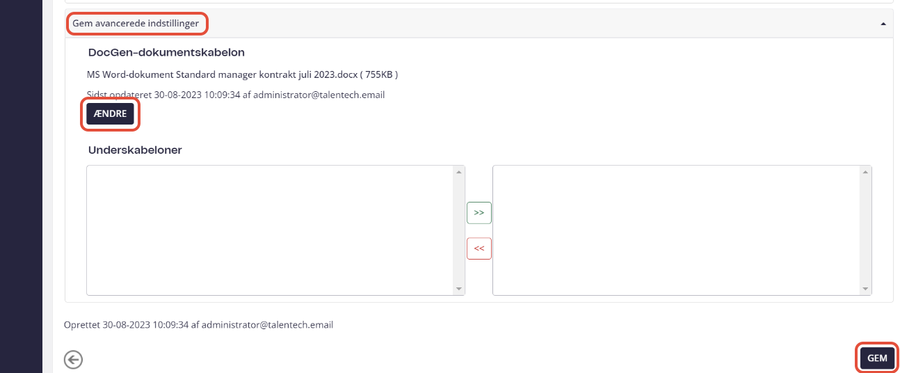 Vi anbefaler, at I ved ændringer i kontrakterne altid downloader den nyeste version fra Talent Recruiter og redigerer denne, da I på den måde slipper for at skulle mappe alle flettefelter op igen, men kun skal gøre dette med eventuelle nye.