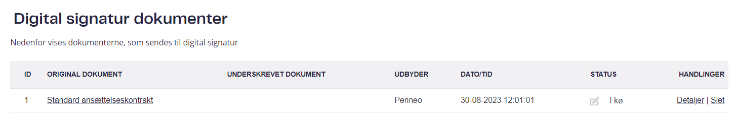 Afhængig af brugerens adgang kan alle kontrakter også tilgås ved menupunktet: Digital Signatur.