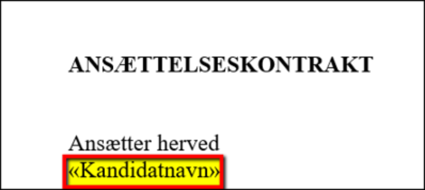 Vær opmærksom på at flettedokumentet kommer i forlængelse af kontrakten, det bliver ikke vedhæftet som et bilag. Kandidaten skriver derfor i samme omgang under på flettedokumentet.