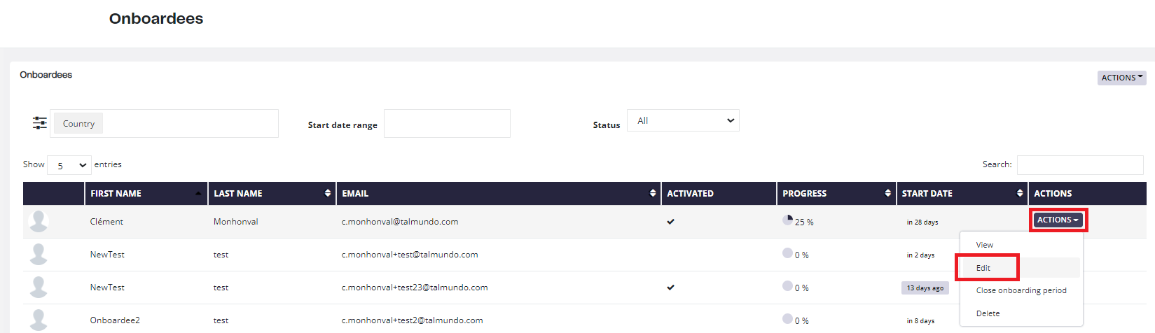 Du kan gå til "Brugerindstillinger" og enten til "Onboardees/Offboardees" for medarbejdere eller "Brugere" for administratorer.