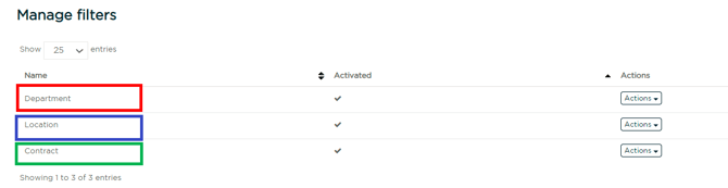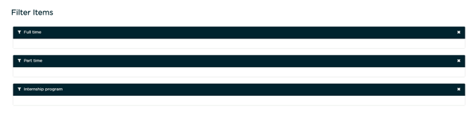 Denne virksomhed har 3 filterkategorier: Afdeling, placering og kontrakt: