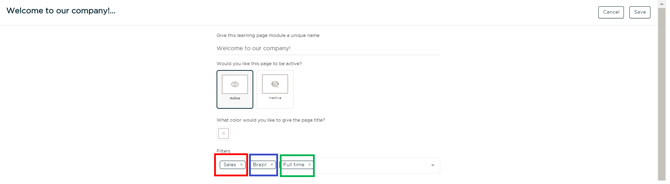 Men de opbygger en læringsside, som ikke skal være synlig for alle ansøgere, kun til dem, som har Salg som Afdeling, Brasilien som Placering og Fastanset som Kontrakt: