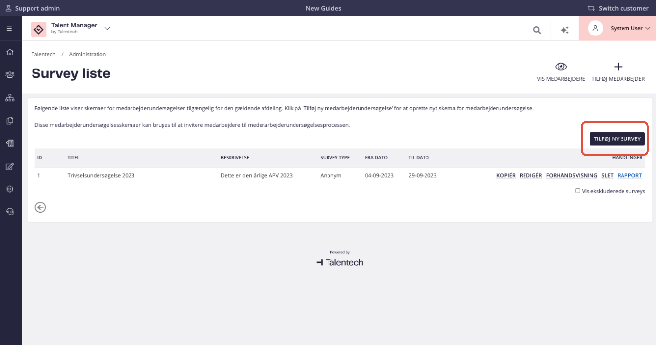 - Klik ”Tilføj ny survey” for at oprette en ny survey.