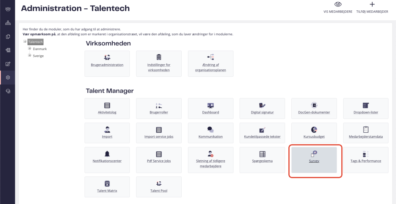 - Klik på modulet ”Survey” i Administration