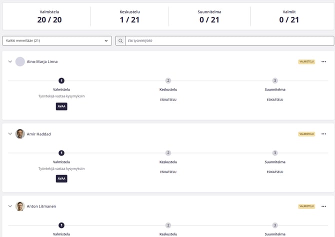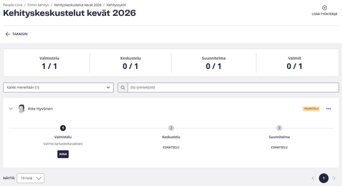 | Kehityskeskustelusykli on aloitettu | Osallistujat (työntekijät ja esihenkilöt) | |