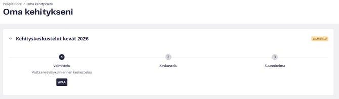 Työntekijöitä pyydetään valmistautumaan ensin. Kehityskeskustelu on työntekijäkeskeinen prosessi, jossa painopisteen on oltava työntekijän kehittymisessä ja työntekijän tulee voida vaikuttaa keskustelun asialistaan. Työntekijä suorittaa omat kehityskeskusteluvaiheensa Oma kehitykseni-välilehdellä.