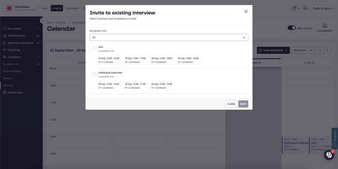 When inviting to existing interviews, you will get the options to select between the series of slots you have created: